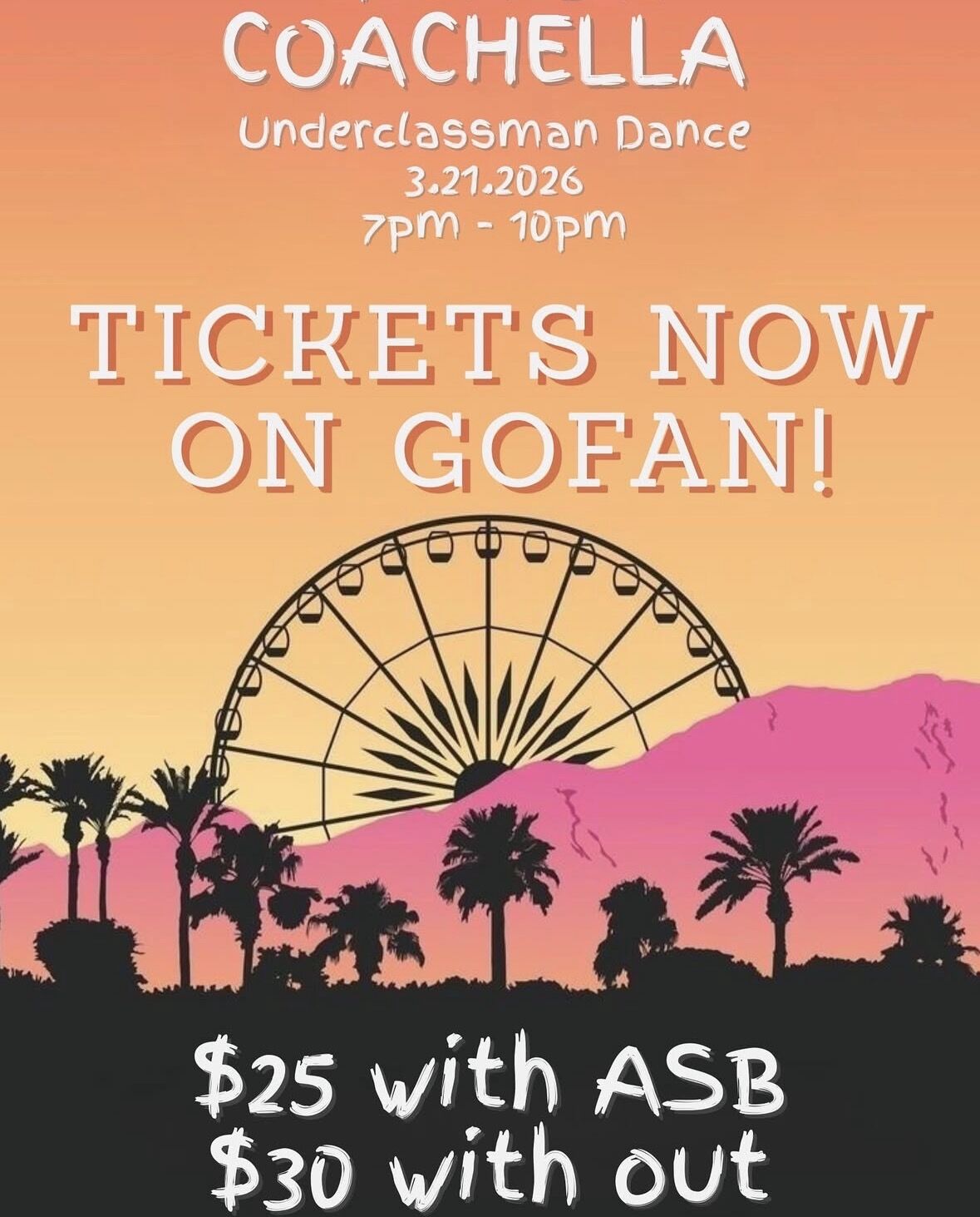 Our Spring Fling: Coachella Theme dance is happening this Saturday, March 21st, from 7:00 PM to 10:00 PM right here at MHHS.